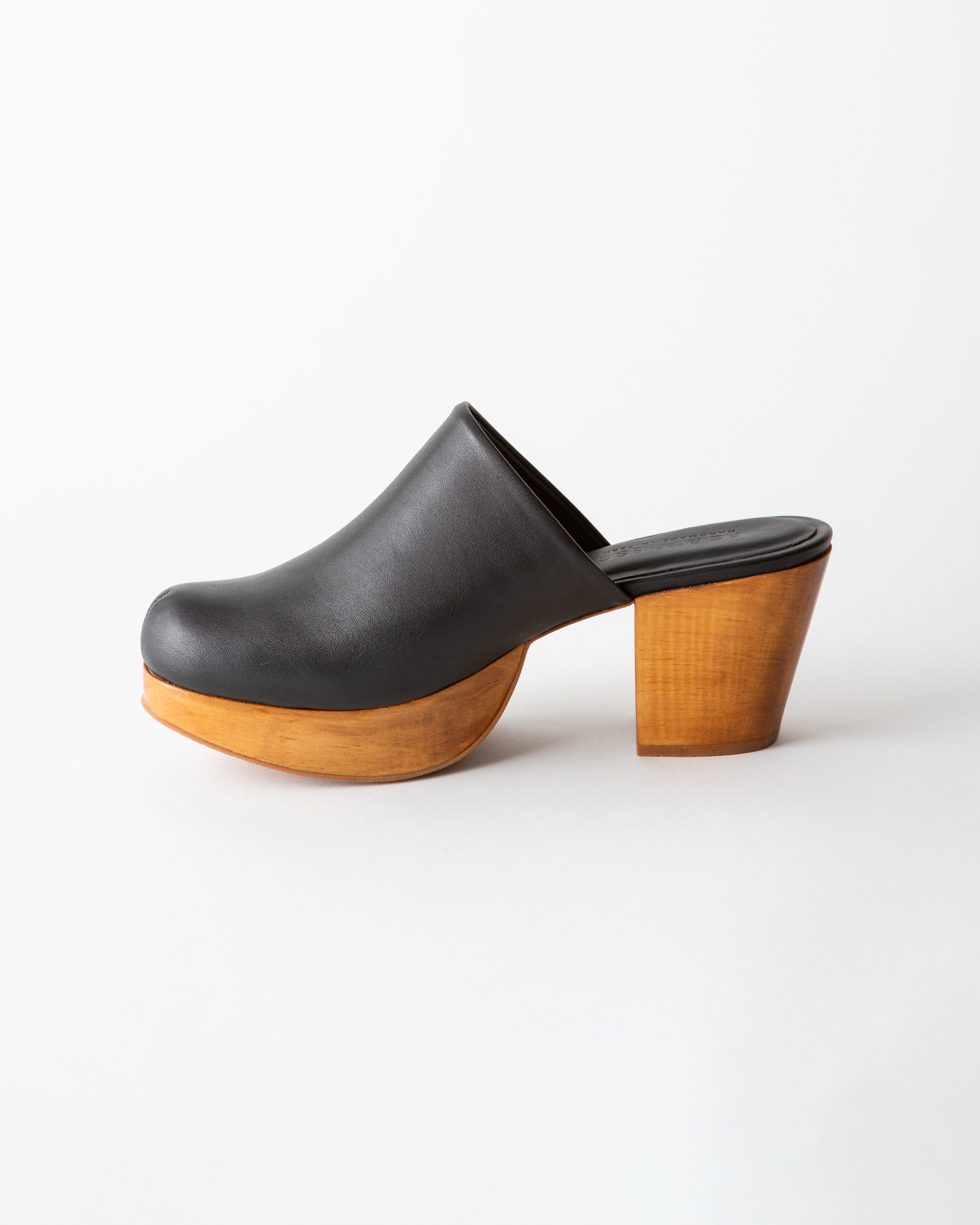 A timeless closed-toe clog with a wood platform.