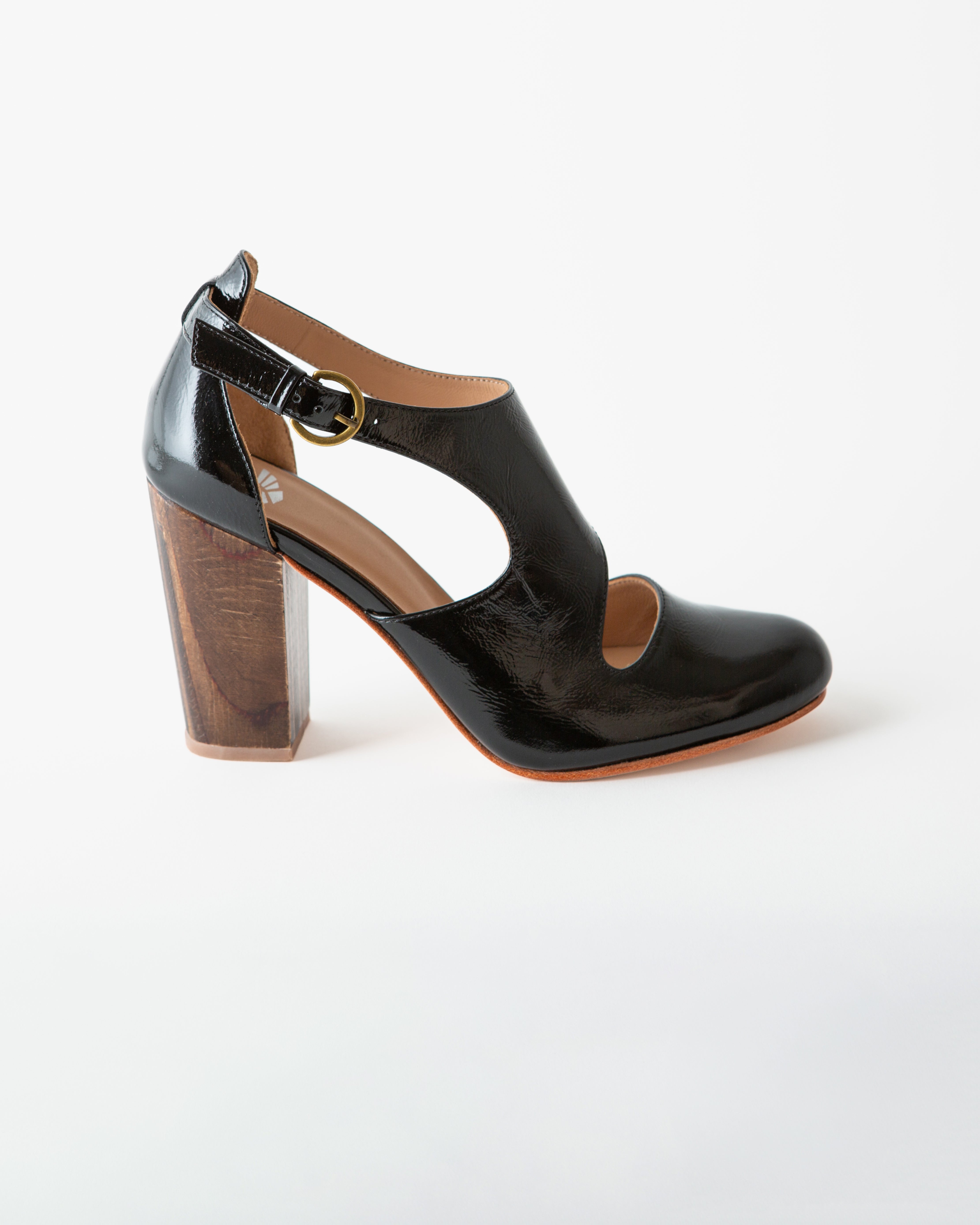 Luna Naya Block Heel Black Crinkle Patent